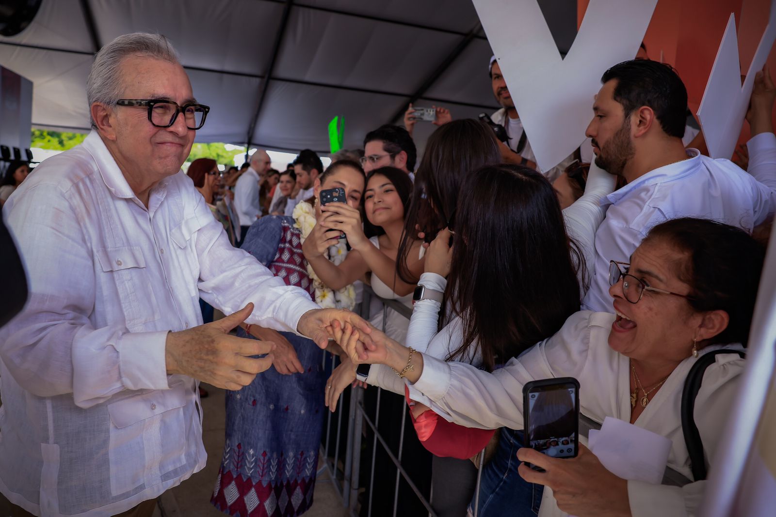 “Por eso, las y los mexicanos bien nacidos, como ustedes, todas y todos, le reconocemos su permanente e inquebrantable defensa de la soberanía nacional, que es el interés supremo de la patria. Por todo esto, viva nuestra presidenta, la doctora Claudia Sheinbaum, bienvenida querida presidenta a Sinaloa a rendir su informe”, concluyó.