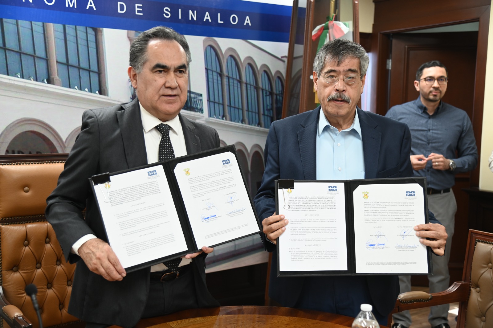 CULIACÁN, SINALOA.- La defensa de los derechos humanos y la protección de las garantías individuales es el objetivo común que dio origen a la firma del Convenio General de Colaboración entre la Universidad Autónoma de Sinaloa (UAS), representada por su Rector, el doctor Jesús Madueña Molina, y la Comisión Estatal de Derechos Humanos (CEDH), presidida por el profesor Óscar Loza Ochoa. Este compromiso contempla, entre sus propósitos principales, la creación de una Maestría en Derechos Humanos.
