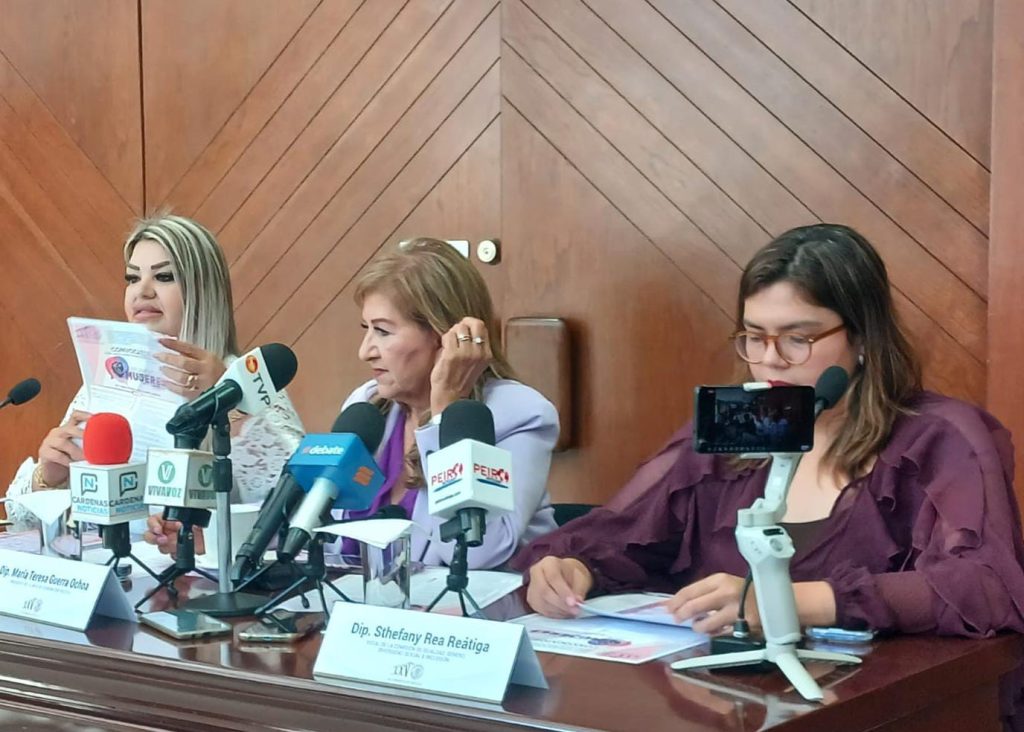 La diputada Guerra Ochoa durante la conferencia de prensa estuvo acompañada de las diputadas de morena Karla Daniela Ulloa Rodríguez y Stefany Rea Reatiga.
