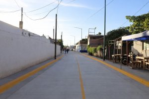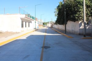 Los trabajos incluyeron la construcción de losas de concreto hidráulico, banquetas, guarniciones, señalización vial y la instalación de luminarias LED, beneficiando de manera directa a 114 habitantes de esta colonia de la cabecera municipal.