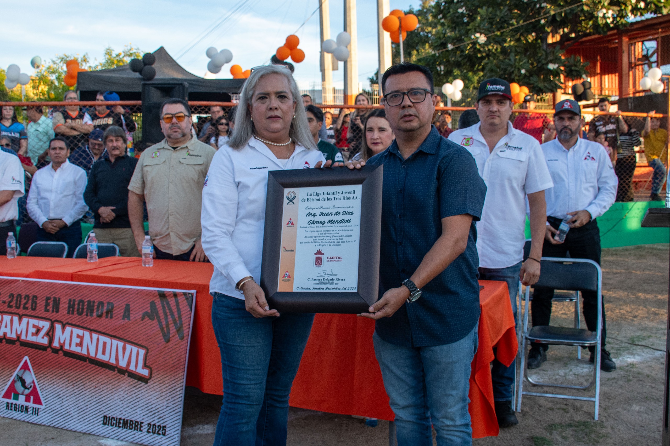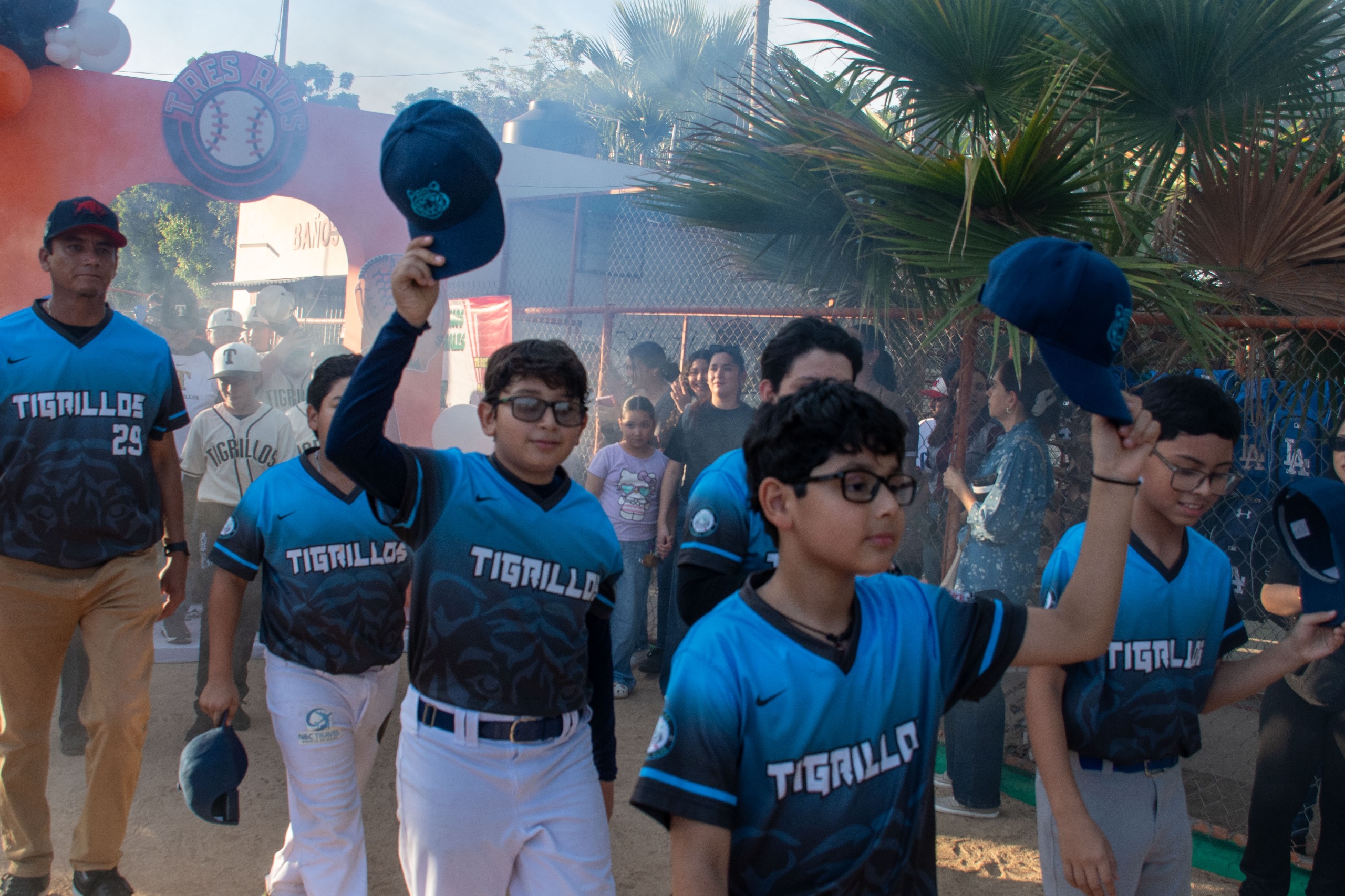 Culiacán, Sinaloa.- La Liga de Beisbol Infantil y Juvenil Tres Ríos inauguró oficialmente su temporada, la cual lleva el nombre del alcalde Juan de Dios Gámez Mendívil, en reconocimiento al impulso que ha brindado al deporte y a la generación de espacios adecuados para la práctica deportiva de niñas, niños y jóvenes.
