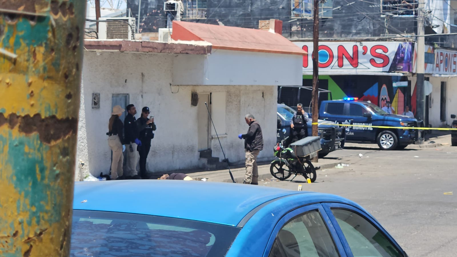 Según los informes la víctima fue atacada a tiros poco antes de las 11 de la mañana en ese sitio y su cuerpo quedó tirado sobre uno de sus costados sobre la banqueta de un inmueble que también estaba habilitado en meses anteriores como bar.