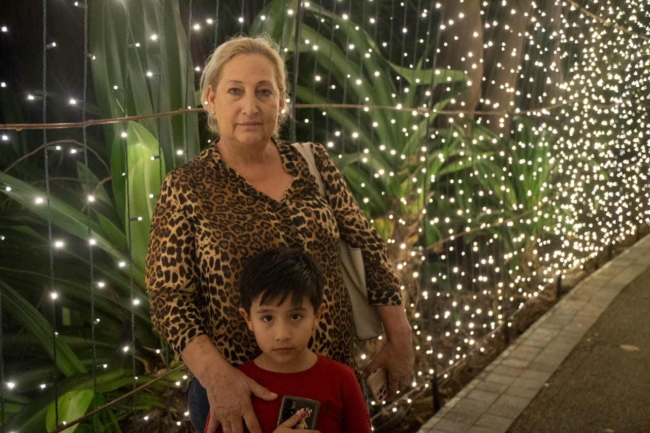 La señora María de Jesús Quiñonez destacó los espacios temáticos: “Muy de acuerdo a la temporada: el túnel, el árbol que habla, el estanque… todo muy bonito.”