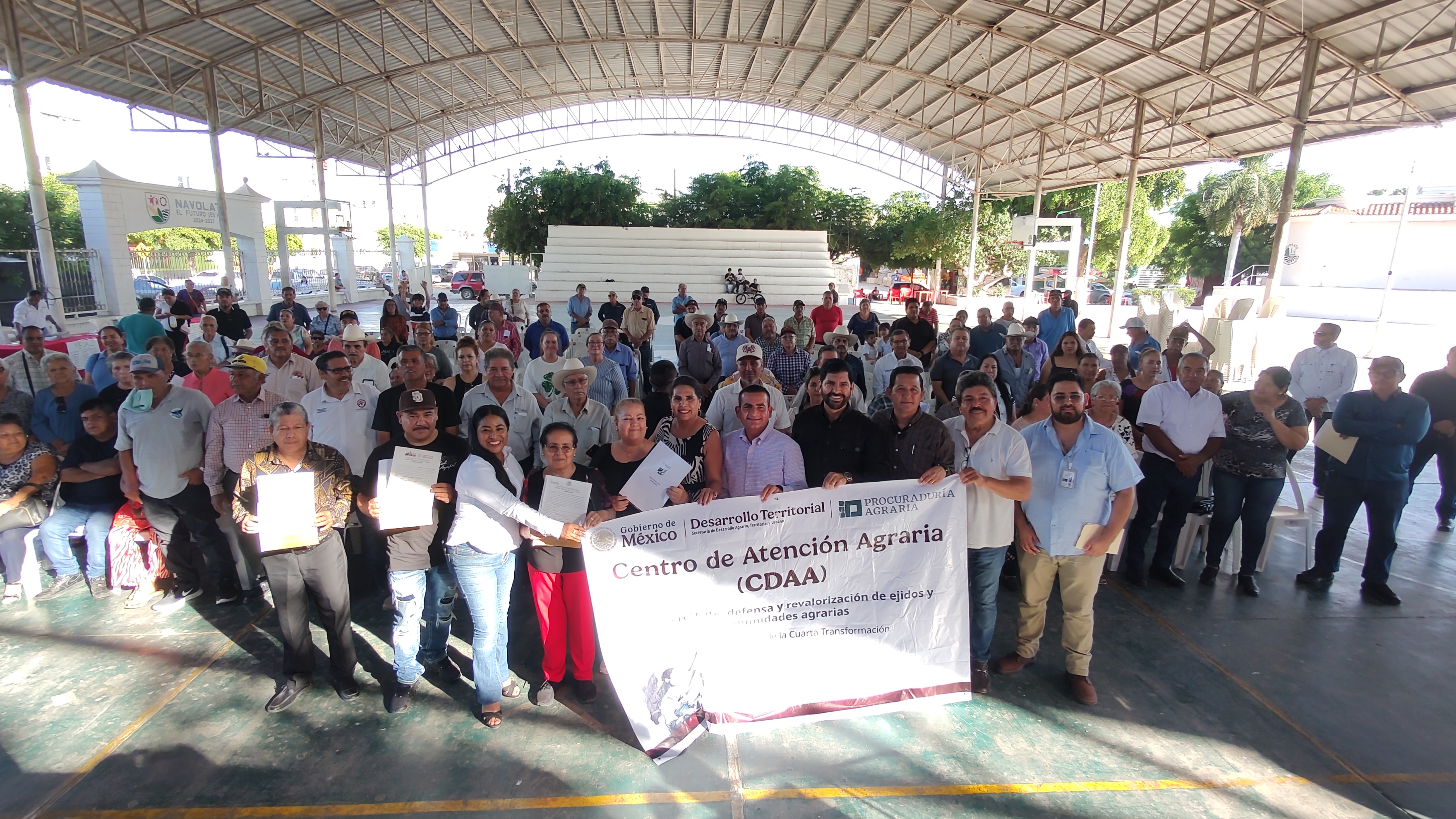 Navolato, Sinaloa.- Con el objetivo de brindar certeza jurídica a las familias del medio rural, el H. Ayuntamiento de Navolato, en coordinación con el Registro Agrario Nacional (RAN) y la Procuraduría Agraria, realizó la inauguración del Centro de Atención Agraria No. 30 y la entrega de certificados parcelarios y títulos de propiedad a productores del municipio.