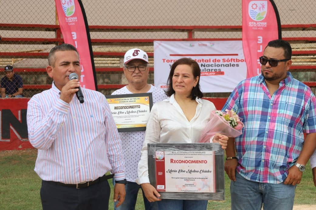 Como parte del evento se destaca el homenaje a la jugadora de gran trayectoria María Eliza Medina, quien recibió el reconocimiento por parte del alcalde Jorge Bojórquez y del presidente de la liga estatal de sóftbol, Alfredo Lerma.