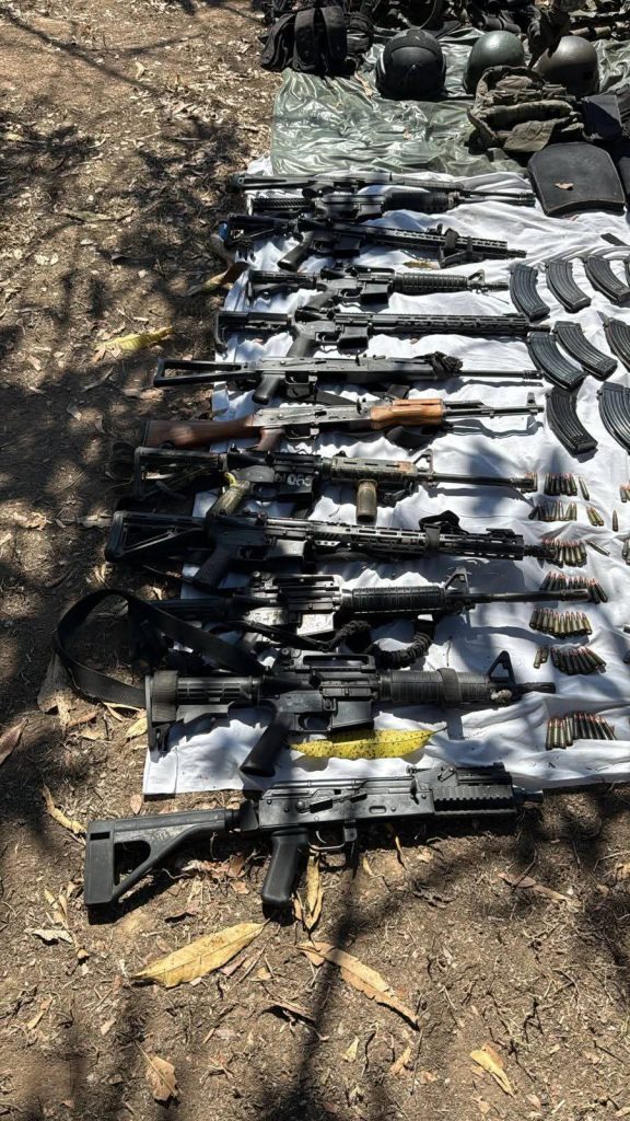 De acuerdo con un comunicado del gobierno del estado de Nayarit, durante la acción se aseguraron 12 armas largas, más de 3 mil 500 cartuchos de distintos calibres, 75 cargadores y ocho artefactos explosivos improvisados, así como equipo táctico, placas balísticas, fornituras y cascos.