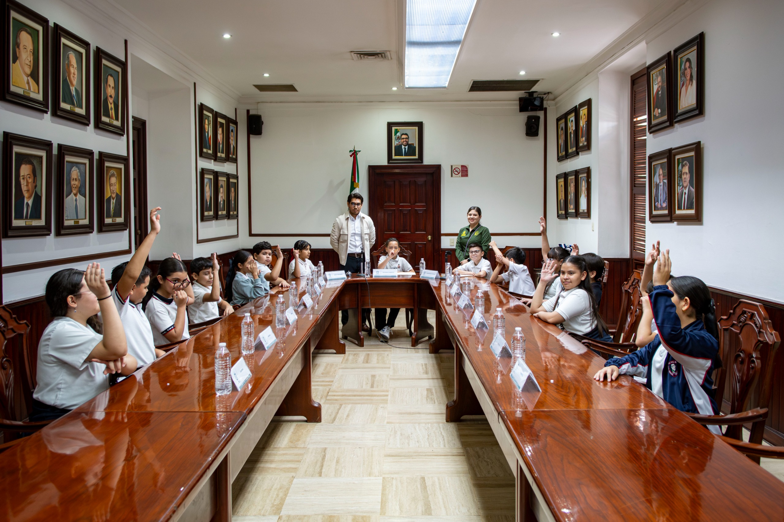 Durante el recorrido, los pequeños disfrutaron de una explicación sobre los murales históricos y conocieron algunos de los espacios más emblemáticos del edificio, entre ellos el Salón de Cabildo, donde pudieron aprender acerca del proceso de cómo se toman las decisiones que rigen a la ciudad.