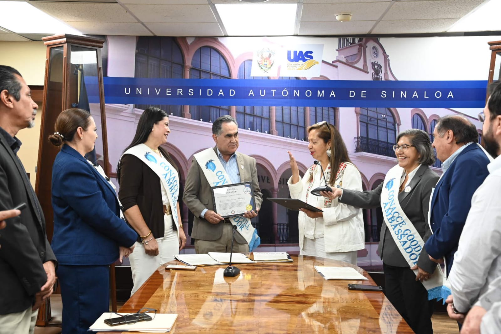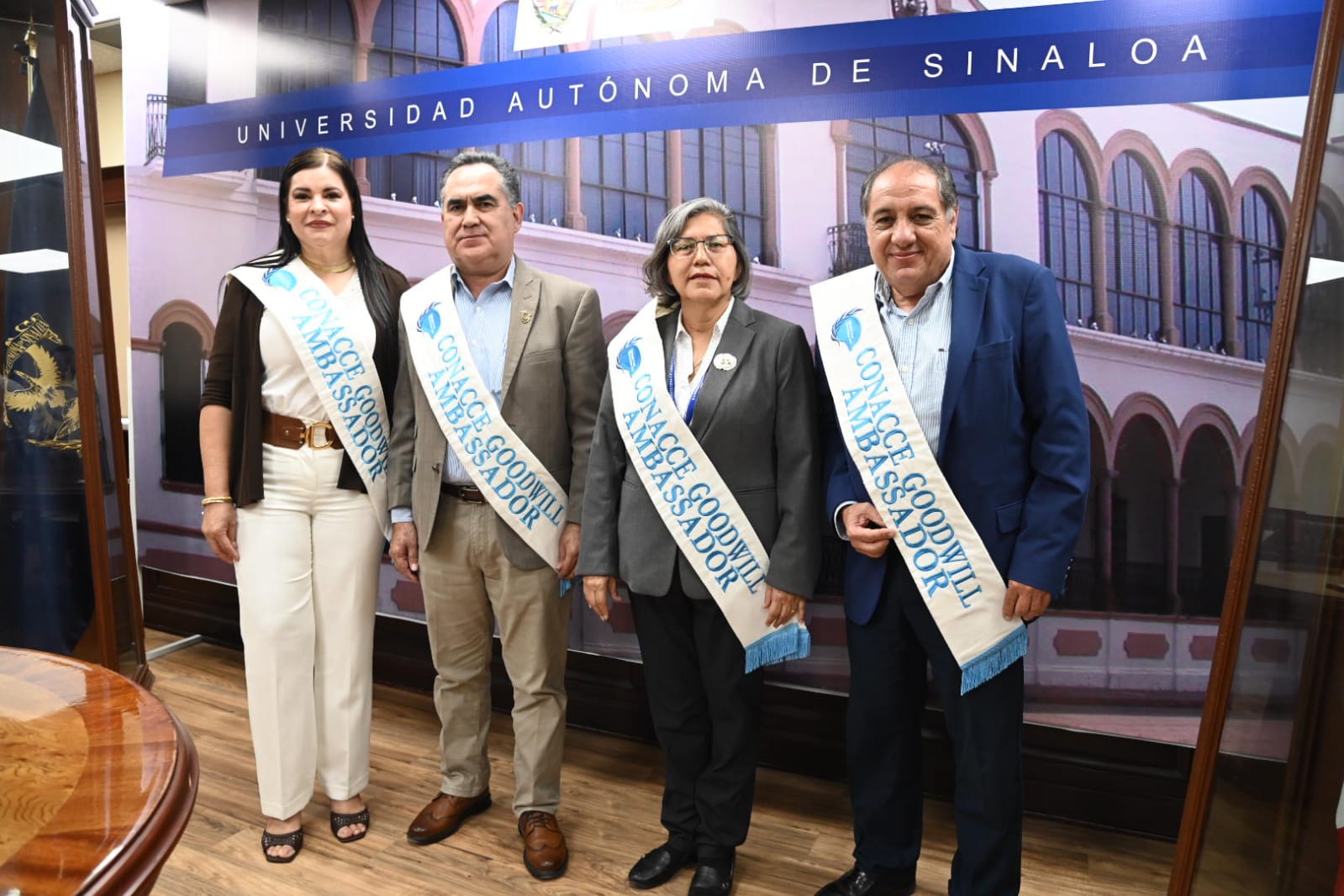 Sinaloa. El Consejo de Generales de CONACCE CHAPLAINS Internacional nombró y otorgó el estado, honor y dignidad título de grado de Embajador de Buena Voluntad al doctor Jesús Madueña Molina, Rector de la Universidad Autónoma de Sinaloa (UAS), y a la doctora Sofía Angulo Olivas, directora de la Unidad de Bienestar Universitario, así mismo les dio el nombramiento de Mensajero Estratégico para la Paz y Mensajera de Soporte, respectivamente.