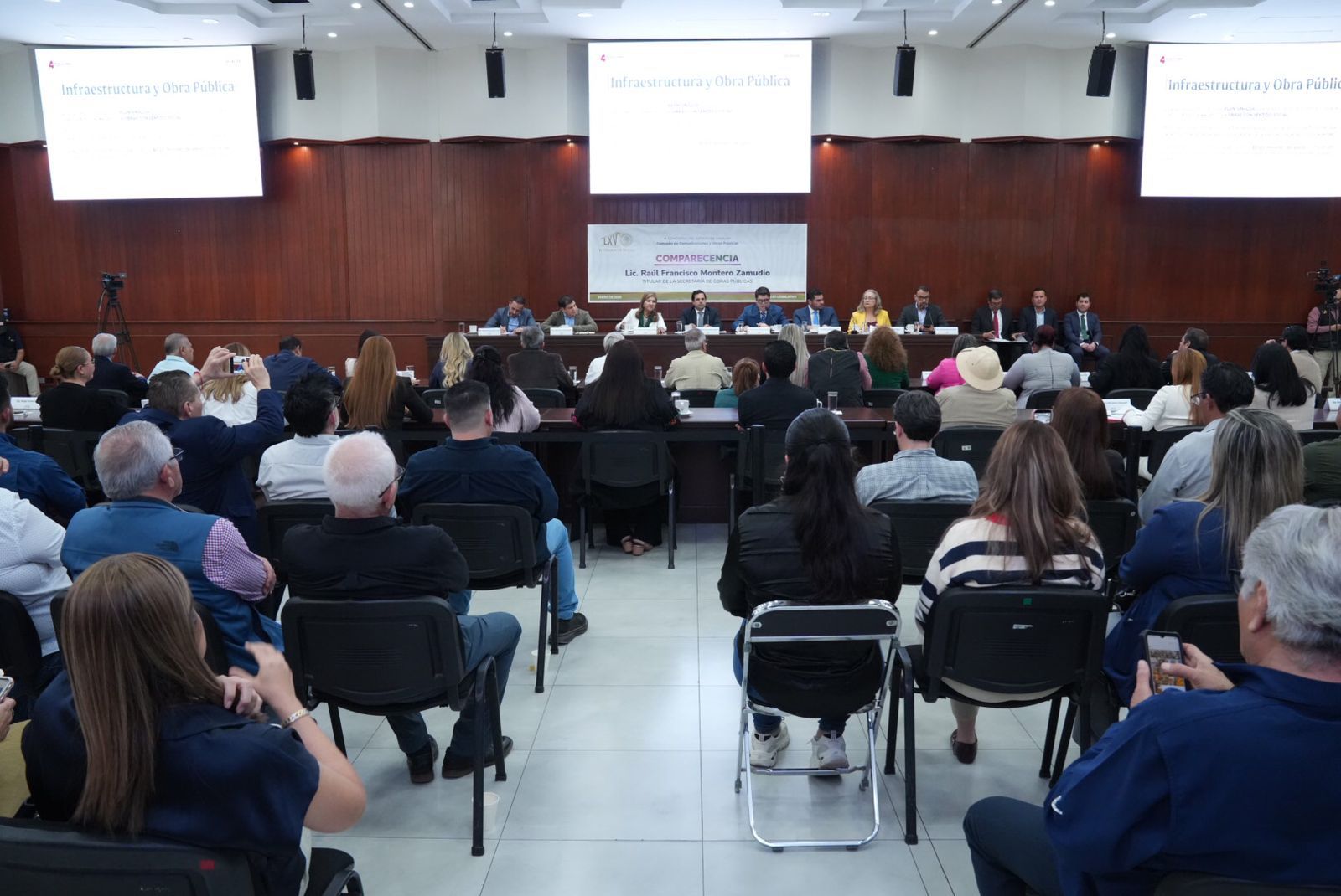 La comparecencia, fue moderada por el diputado Carlos de Jesús Escobar Sánchez, presidente de la Comisión de Comunicaciones y Obras Públicas, y también estuvieron en el presídium la presidenta de la Junta de Coordinación Política, Tere Guerra, y el presidente de la Mesa Directiva del Congreso, Rodolfo Valenzuela Sánchez.