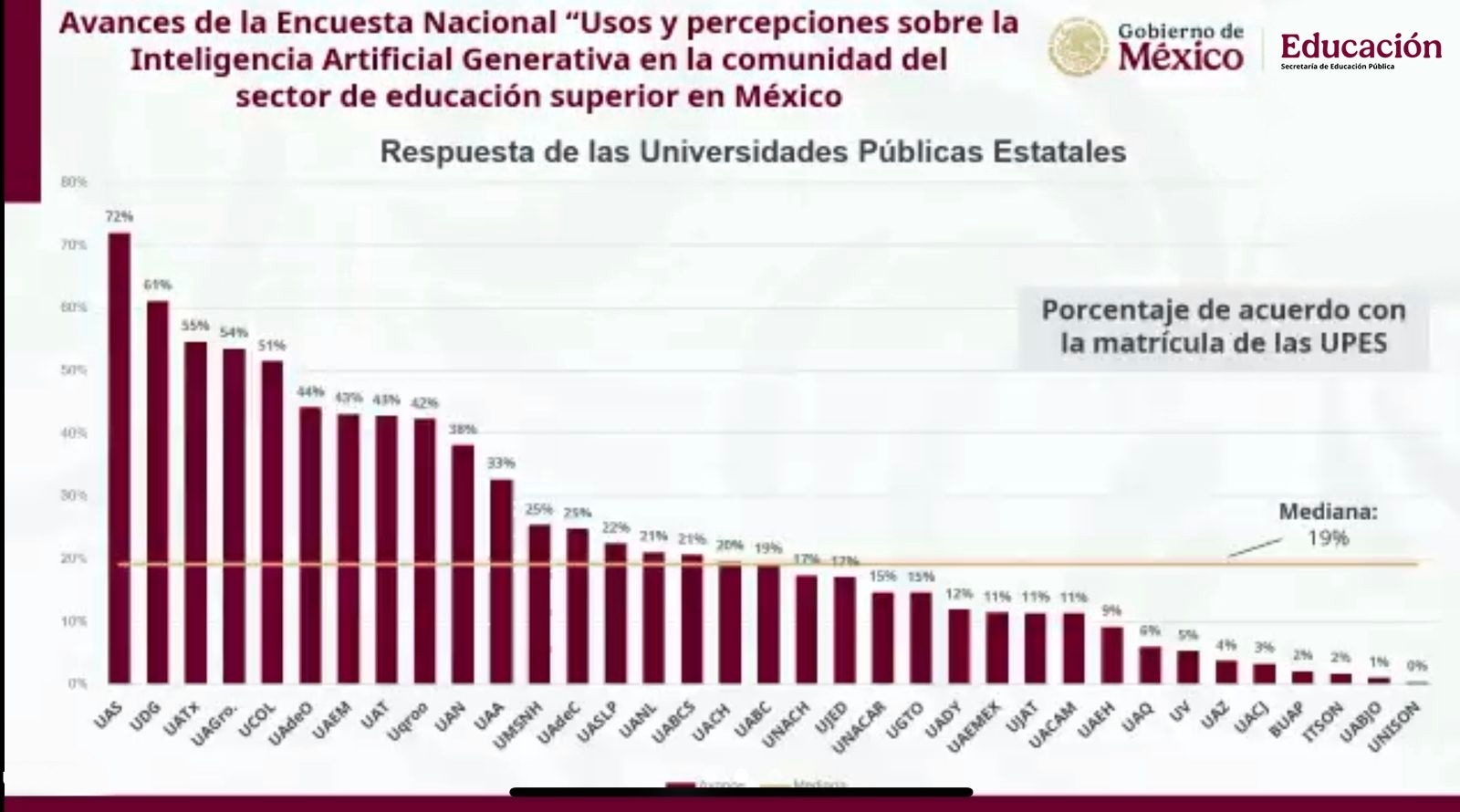 Sinaloa.- Refrendando su entusiasmo y su esencia participativa, la Universidad Autónoma de Sinaloa (UAS) fue la institución con más participación de su estudiantado en la Encuesta nacional “Usos y percepciones sobre la Inteligencia Artificial Generativa (IAG) en la comunidad del sector de educación superior en México”, promovida por la Subsecretaría de Educación Superior de la Secretaría de Educación Pública Federal (SEP), la Secretaría de Ciencia, Humanidades, Tecnología e Innovación (SECIHTI) y la Asociación Nacional de Universidades e Instituciones de Educación Superior (ANUIES), entre otros.