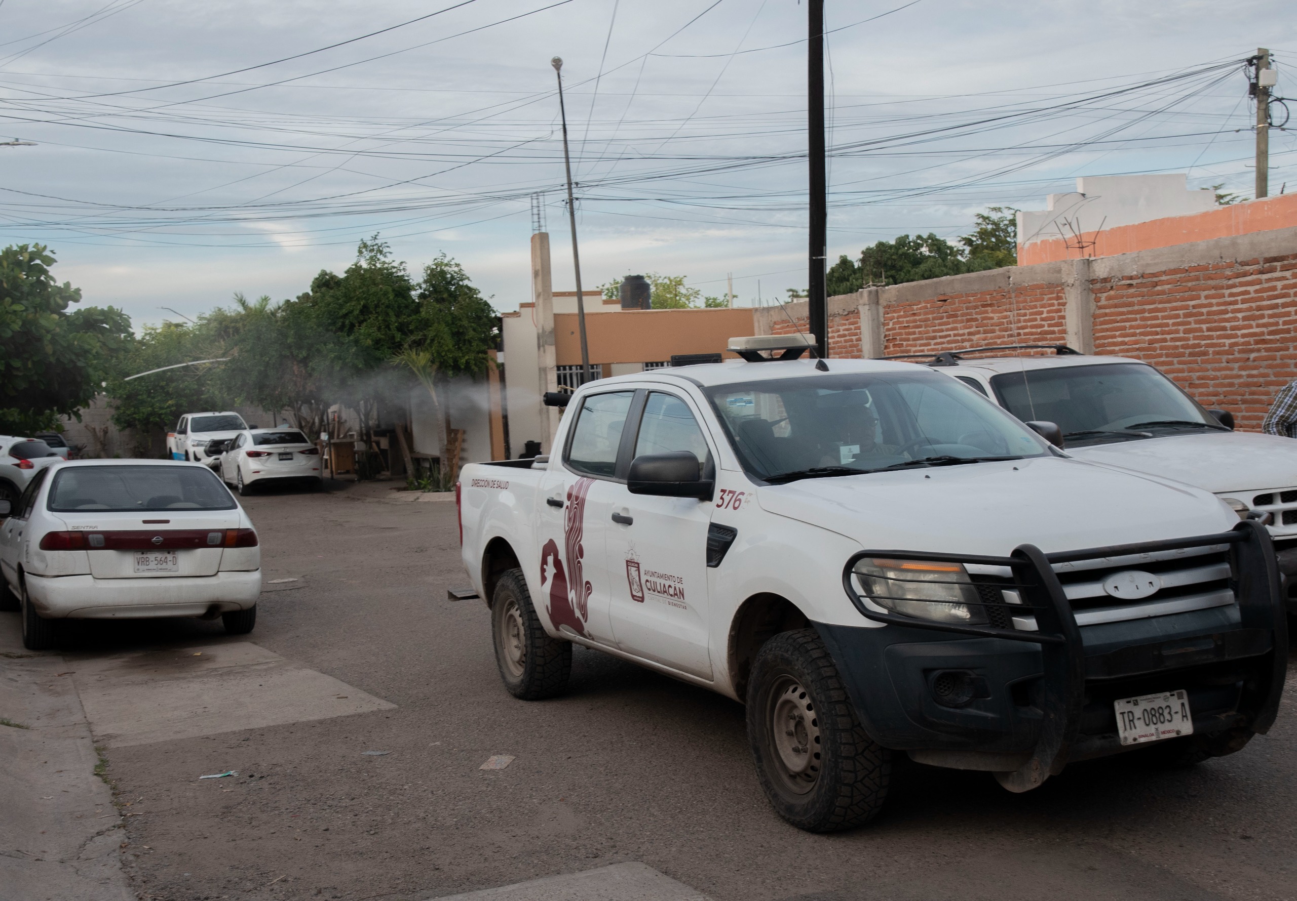 CULIACÁN, SINALOA.- El Ayuntamiento de Culiacán llevó a cabo una jornada de fumigación en la colonia Valles del Sol, como parte de las acciones preventivas para el control de vectores y el cuidado de la salud de las familias del sector.