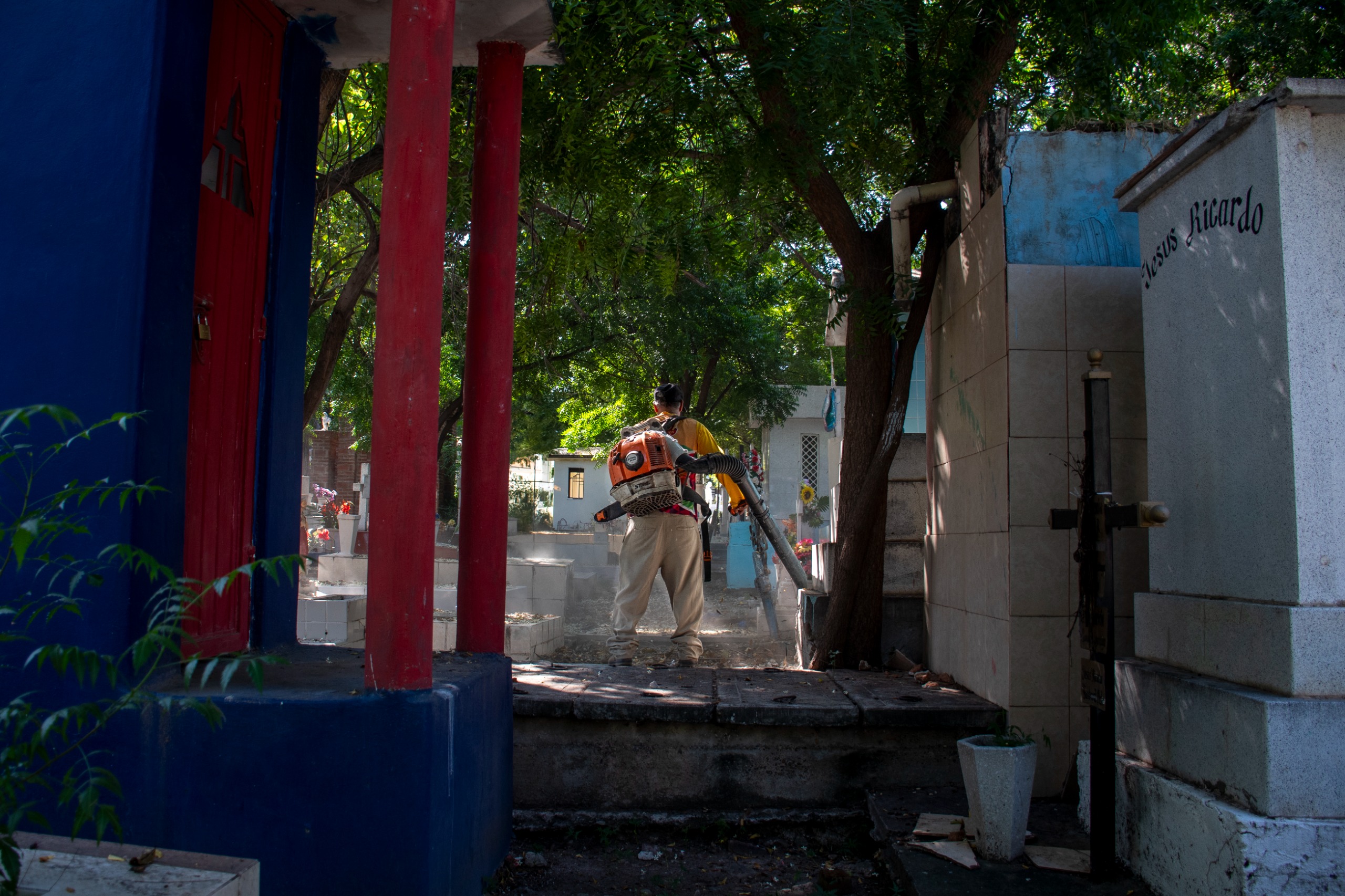 Los trabajos se realizan en los panteones Civil, San Juan, La Lima, Loma de Rodriguera, Jardines del Barrio, 21 de Marzo y Bachigualato, donde cuadrillas de personal se enfocan en el retiro de hojarasca, vidrio, basura y escombro, así como en la limpieza y pintura de piletas.