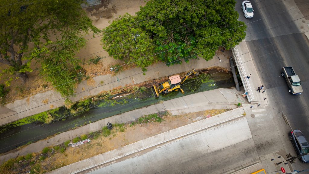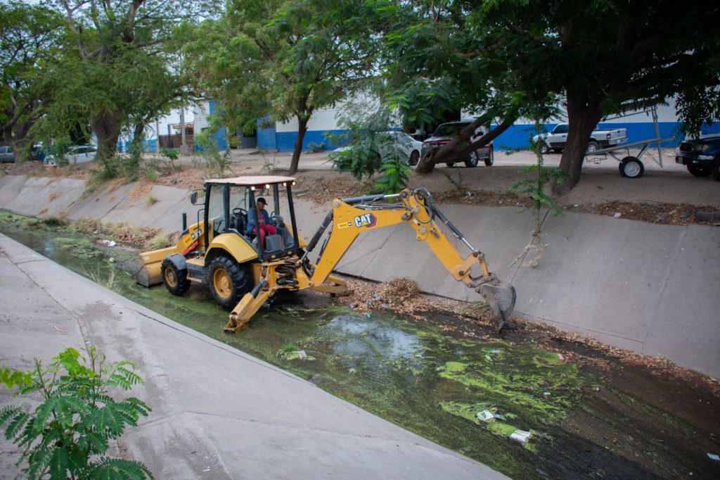 Culiacán, Sinaloa.- Con miras a la próxima temporada de lluvias, personal del Ayuntamiento de Culiacán realiza trabajos de limpieza y desazolve en el canal Danubio —particularmente en su desembocadura con el canal conocido como “El 7”— y en el arroyo de El Piojo, con el objetivo de prevenir inundaciones y garantizar el adecuado flujo del agua pluvial.
