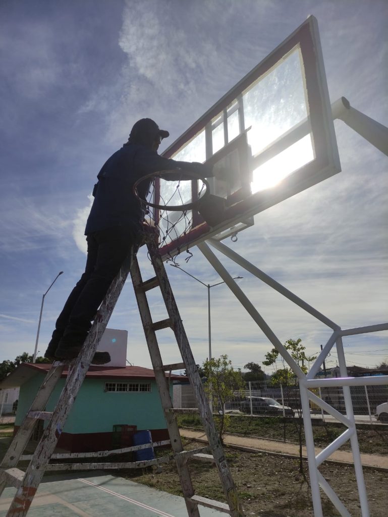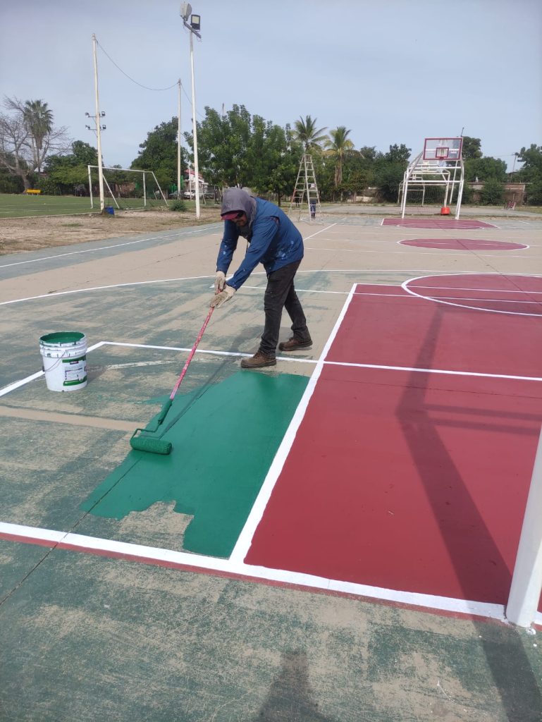Asimismo, en la colonia La Progreso, se pintó la cancha de usos múltiples, incluyendo tableros, aros y estructura, lo que permitirá beneficiar a más de 500 habitantes de la zona.