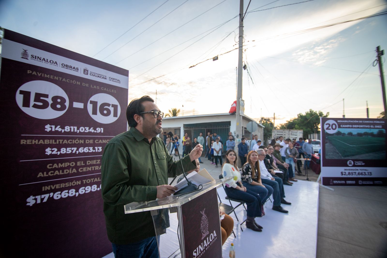 CULIACÁN, SINALOA.– Al entregar junto con el gobernador Rubén Rocha Moya obras de pavimentación y una cancha deportiva en El Diez, con una inversión cercana a los 18 millones de pesos, el alcalde Juan de Dios Gámez afirmó que el pueblo debe saber qué se está haciendo para su bienestar y destacó que hoy a diferencia del pasado es justamente el pueblo el que plantear la ruta de qué hacer en cada colonia y comunidad.