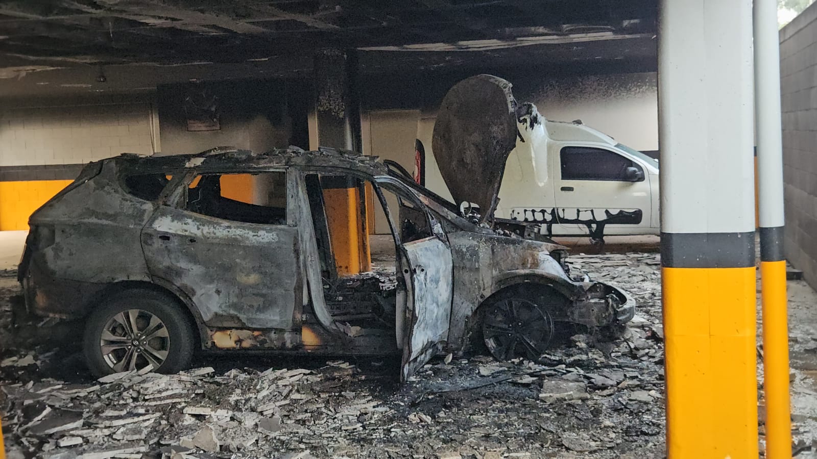 Aunque intentaron sofocar las llamas con ayuda de un extintor el fuego se extendió rápidamente provocando pérdidas totales en el vehículo siniestrado. También hubo pérdidas materiales en la infraestructura del hotel ya que el falso plafón y algún tendido eléctrico se dañó.