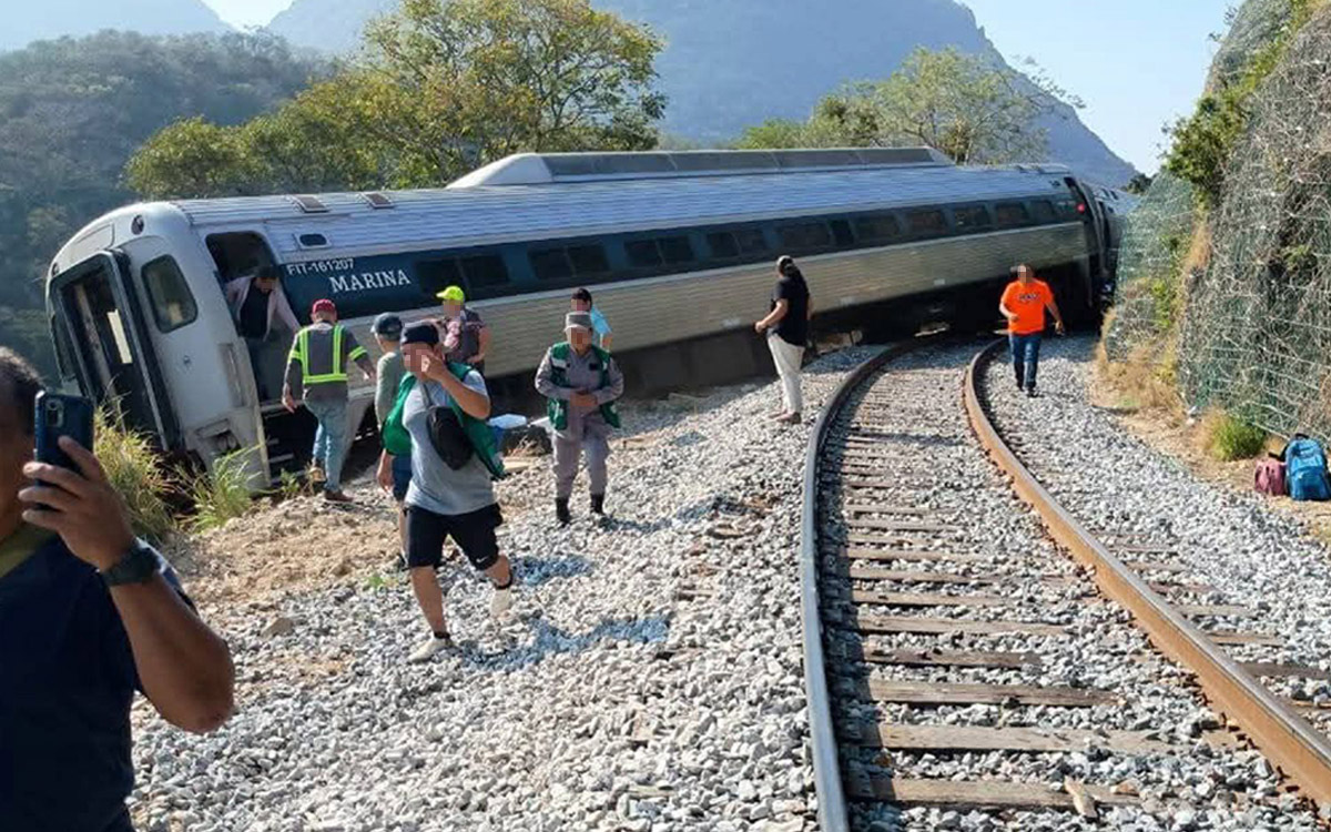 De manera remota, el secretario de Marina, Raymundo Pedro Morales Ángeles, ratificó que el accidente ocurrió a las 09:28 horas, cuando una locomotora se descarriló y provocó que cuatro vagones salieran de las vías y detalló que el primer vagón se deslizó por un talud de 6.5 metros de profundidad, el segundo quedó parcialmente suspendido y los otros dos no presentaron daños graves.