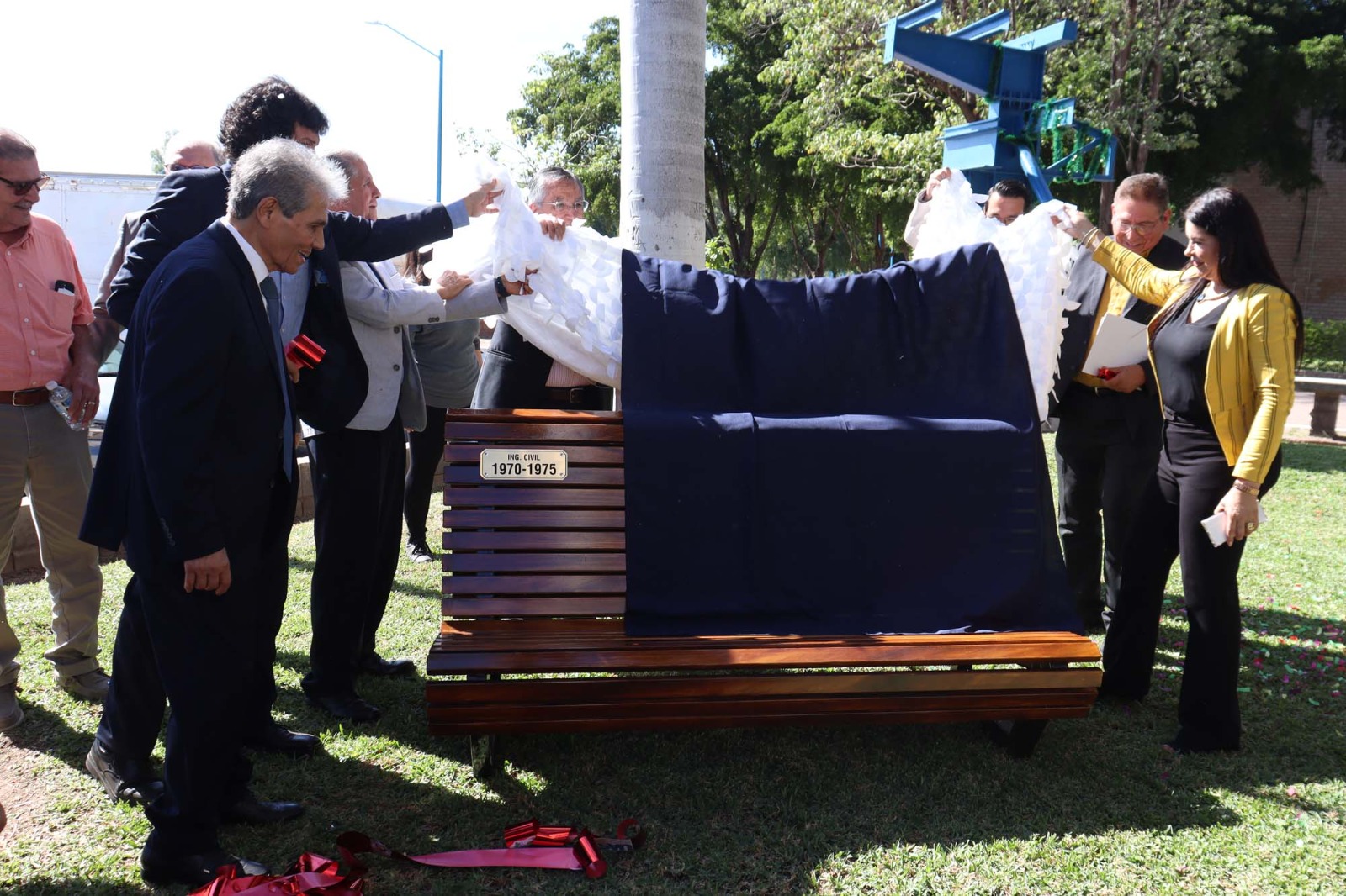 El evento concluyó con el corte de listón de inauguración de la banca que se ubica en el área principal de jardines de la Faculta de Ingeniería Culiacán, la cual lleva el nombre de la Generación 1970-1975 y un código QR con la semblanza, logros y trayectoria de cada uno de los integrantes de esta, convirtiéndose en un símbolo permanente de identidad universitaria que servirá de inspiración para los ingenieros en formación.