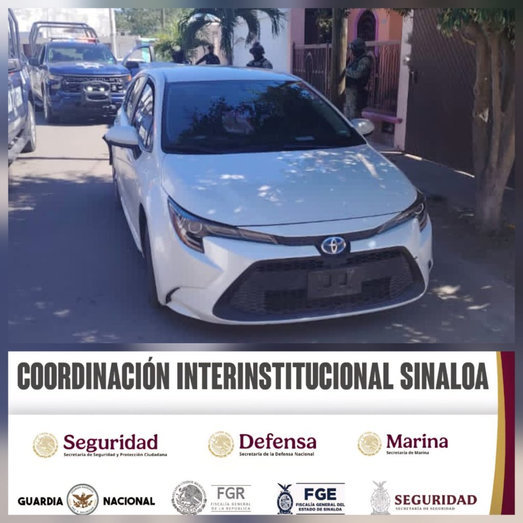 La primera unidad recuperada es un sedán marca Toyota, línea Corolla, de color blanco. El evento ocurrió cuando policías estatales que realizaban recorridos en el sector Los Ángeles observaron un vehículo con placas de un automotor reportado como robado, cuyo conductor aceleró la marcha al notar la presencia policial, iniciándose una persecución en la colonia Los Ángeles. Metros adelante, una patrulla oficial impactó el vehículo, ocasionando que perdiera el control. El conductor abandonó la unidad y huyó entre las casas sin lograr su captura. Al solicitar información del automotor, los policías fueron informados de que contaba con un reporte de robo con fecha del 22 de enero de 2026; además, en el interior se localizaron 10 cartuchos para arma corta calibre 9 mm.