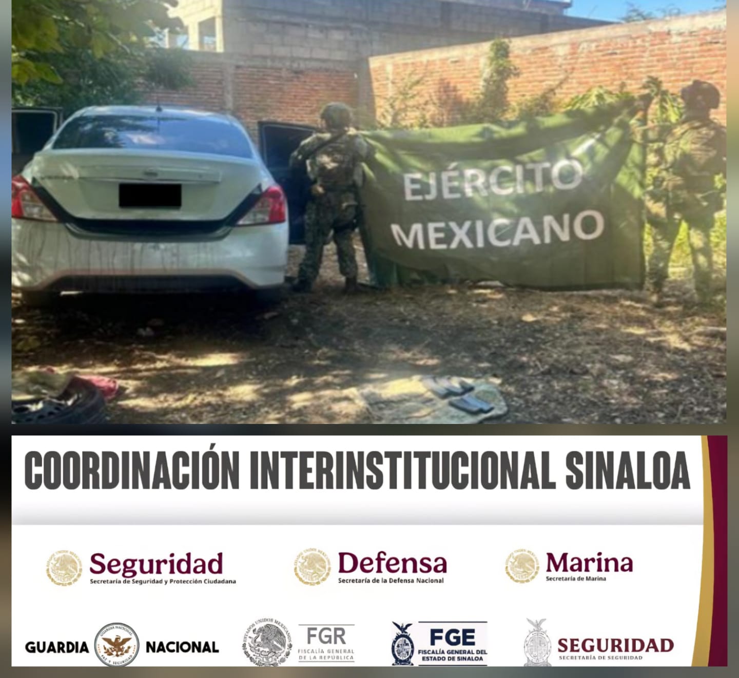 Mientras realizaban reconocimientos terrestres en la sindicatura de Villa Juárez, en el municipio de Navolato, personal militar observó un vehículo cuyos ocupantes, al notar la presencia de la autoridad, emprendieron la huida, por lo que se les dio seguimiento.