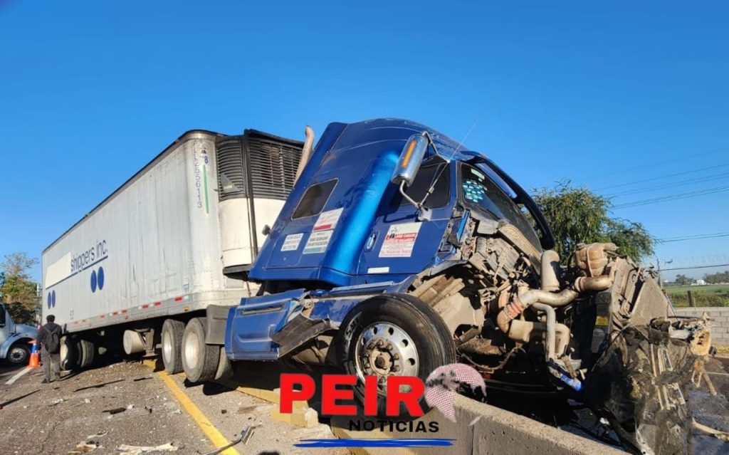 Las autoridades informaron que las unidades involucradas son un tráiler doble semi remolque de tractocamión de color azul y dos cajas cuadradas metálicas de color blanco que quedó encaramado sobre los muros de concreto de contención que dividen ambos carriles de la autopista Benito Juárez La Costera.