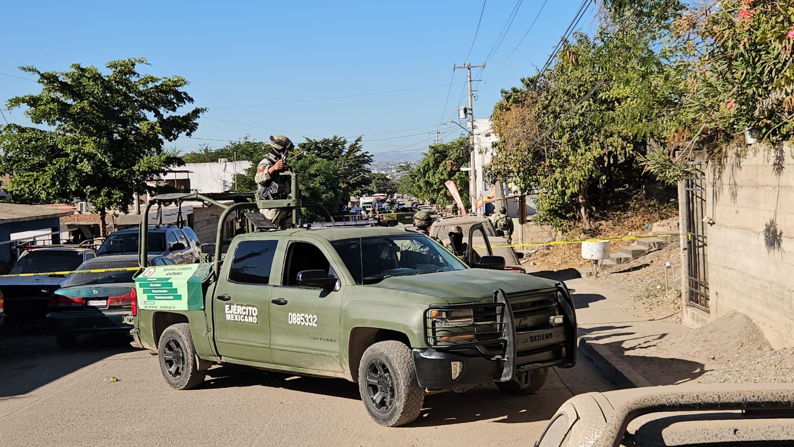La mujer cayó tendida boca arriba junto a la pared de la vivienda sobre la banqueta y minutos después arribaron al sitio elementos de la secretaría de la defensa nacional para atender el reporte y disparos de arma de fuego y una persona lesionada a balazos en el sitio.